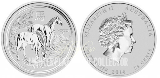 Australia Lunar II. 1/2 oz Silver " Year of the Horse " 2014 BU in capsule. Year: 2014. Metal: Silver (Ag) .999 Weight: 15.55 g. (1/2 oz).Condition: BU.