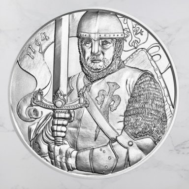This stunning silver coin is the first in a series of three issued by the Austrian Mint to celebrate its 825th anniversary. The design pays homage to the Austrian Duke Leopold V, who founded the mint in 1194 using part of the 35,000 kilograms of silver extorted from the people of England for the release of King Richard 'Lionheart'.