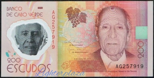 Shop › Coins and banknotes › Banknotes › Cape Verde › Cap Vert 200 Escudos Henrique Teixeira de Souza 2014.07.05 UNC - Nº AG257919 Polymer-Banknote. P-71