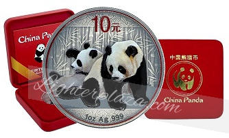 CHINA PANDA 10 Yuan 1 oz Silver 2010. Nominal value: 10 Yuan. Metal: Silver Antique Finish Color. Weight: 31.10 gr. ( 1 oz ). Fineness: 999‰ Diameter: 40 mm. Mintage: 250 pcs. Condition: BU. Delivery: in Box und CoA