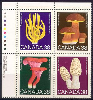 ShopMushroomsMushrooms Block of 4 stamps - CANADA Issue date 04-08-1989 - MINT **