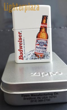 Zippo lighter 1999. VERY RARE! ANHEUSER-BUSCH. BUDWEISER BOTTLE BEER. White Matte finish. Condition: A brand-new in Box. Made in the USA.