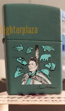Zippo lighter 2001 ZIPPO POW-WOW DANCER. CARSON WATERMAN DESIGN. Teal Matte finish.